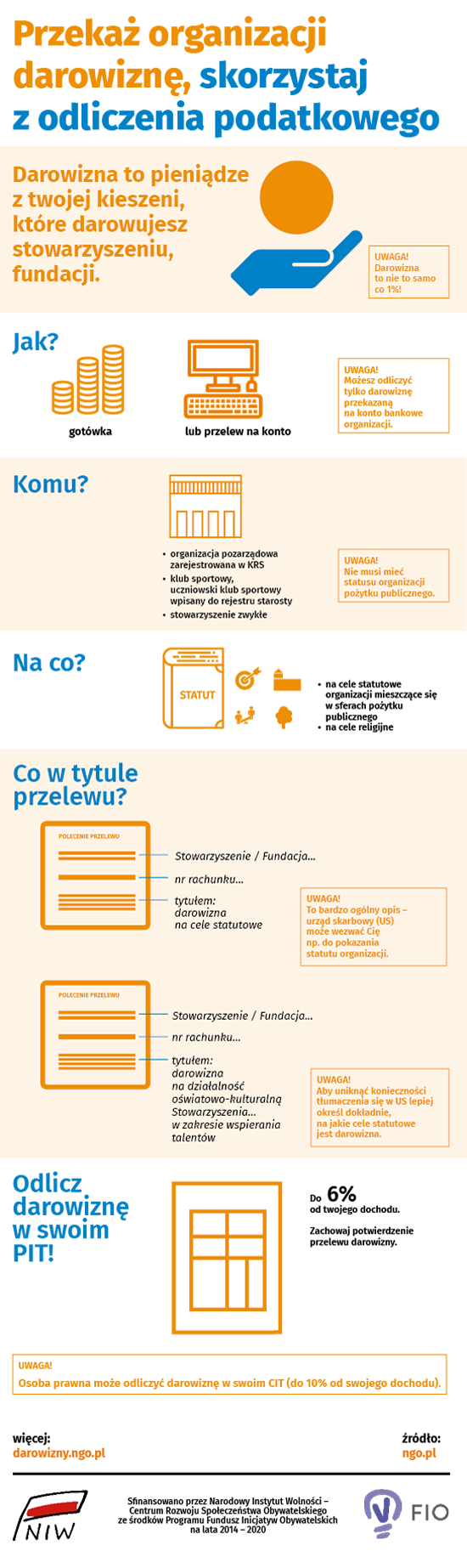 Pamiętaj! Organizacja pozarządowa, której przekazujemy darowiznę nie musi mieć statusu organizacji pożytku publicznego.