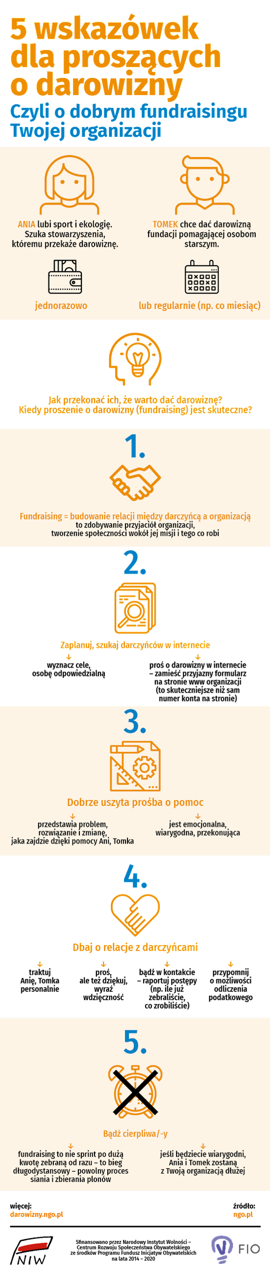 O tym, jak przygotować dobry apel o wsparcie, jak używać dostępnych w internecie narzędzi, jak dziękować i raportować zrealizowane z darczyńcą działania więcej tutaj >